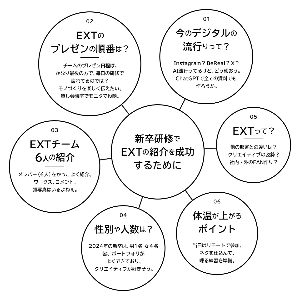 ここでは、新卒のメンバーの情報、プレゼンの場所、人数などをリサーチ。