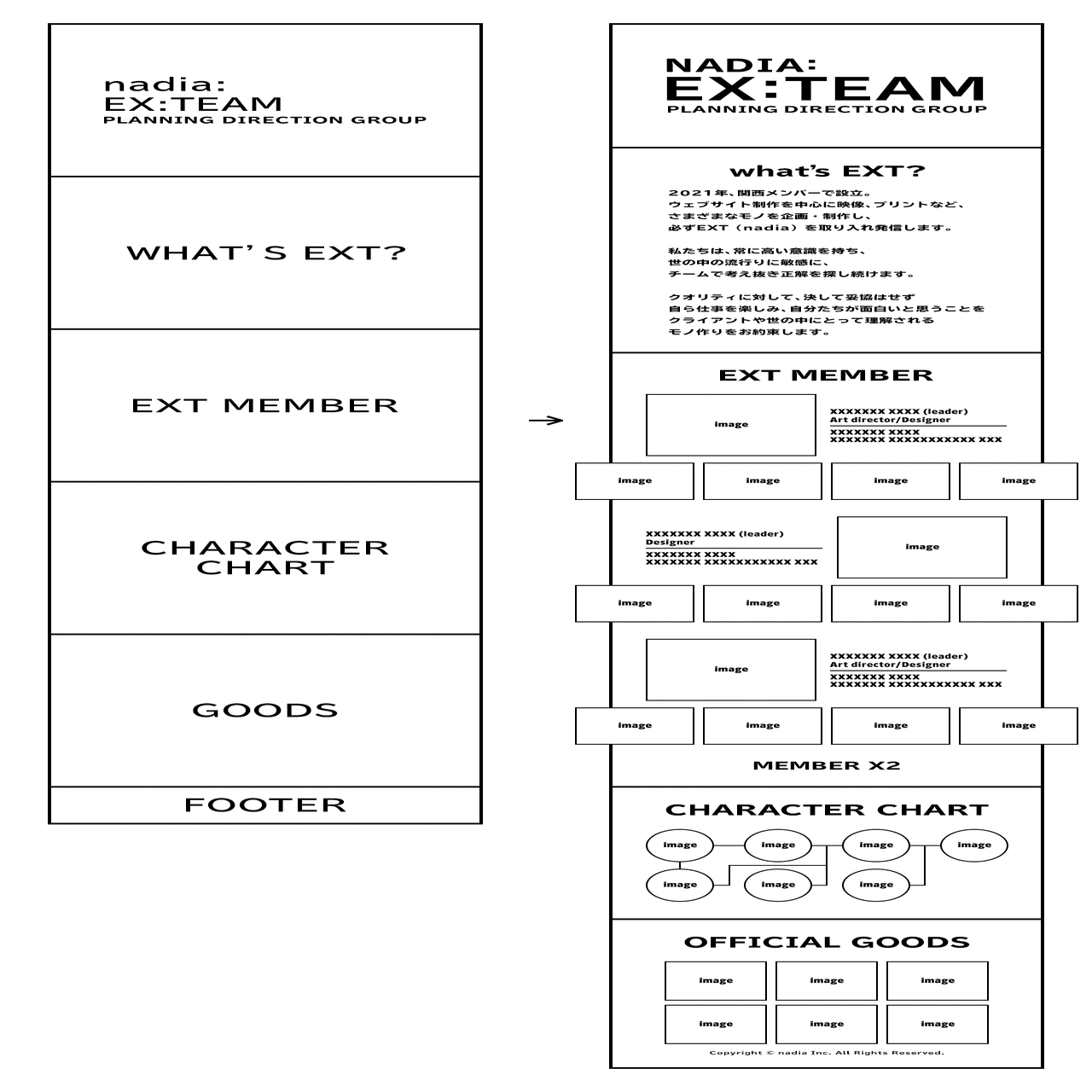 最初は要素を書き出し、徐々にコンテンツの長さや魅せるポイントを考えて、レイアウトに落とし込んでいきます。