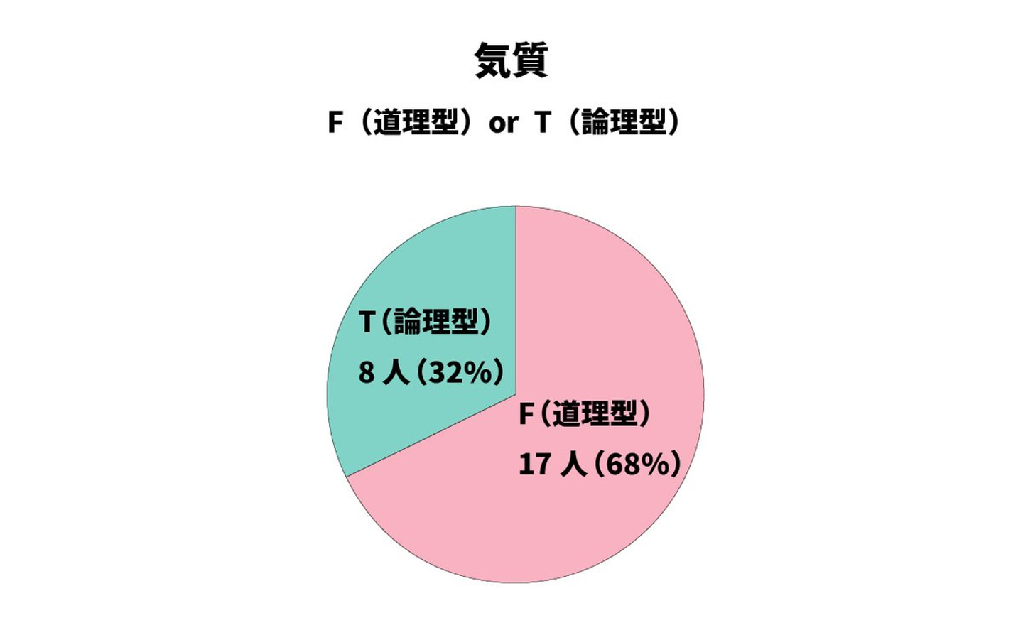 先ほどの2つよりは差が小さいですが、「気質」はFが25人中17人(68%)でした!