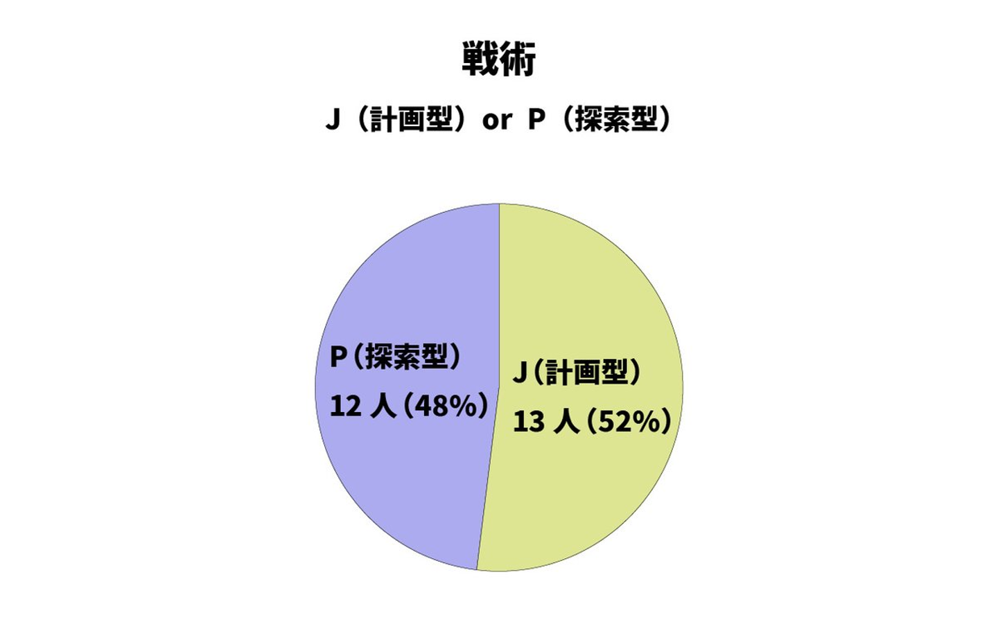 「戦術」は25人中Jが13人、Pが12人とほとんど半分になりました!