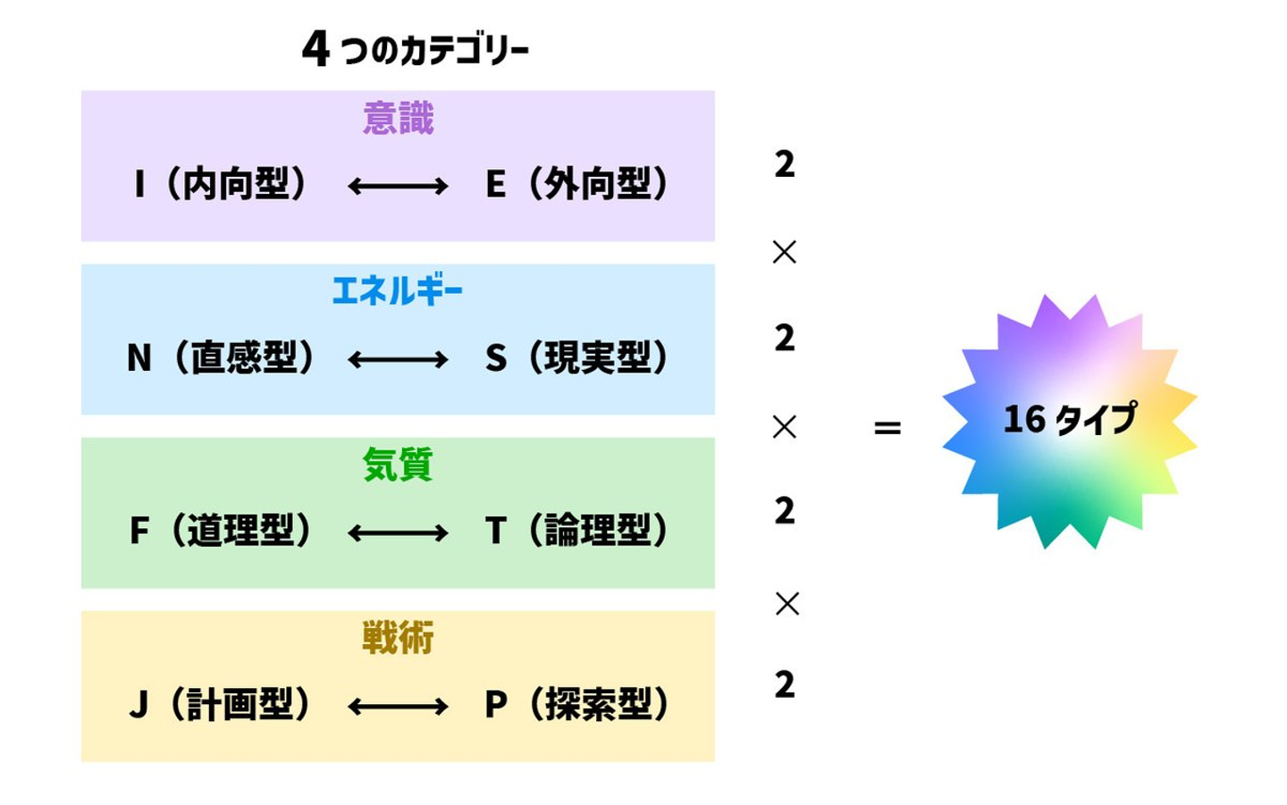 (J=Judging:計画型、P=Perceiving:探索型)