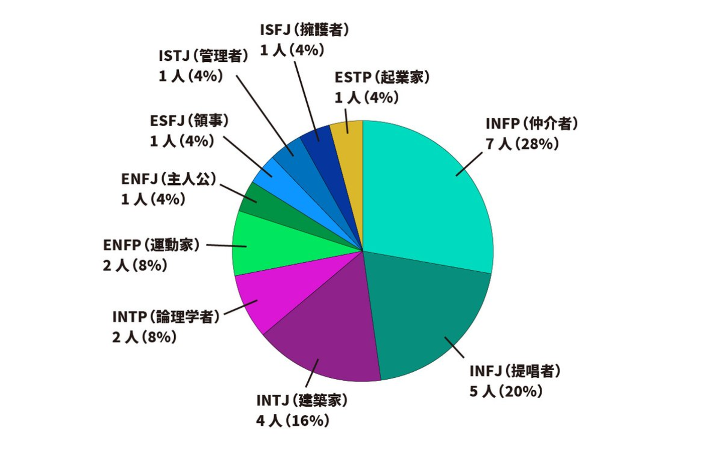 結果は、INFPとINFJで12人(48%)と約半数を占める結果に…!!