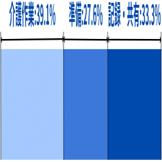 実際私たちが高専近くの介護施設にて、1日介護施設にてタイムスタディ(各業務時間の計測)を行わせていただいたところ、なんと業務時間の33%もの時間が記録や情報共有などの作業に充てられていたのです。