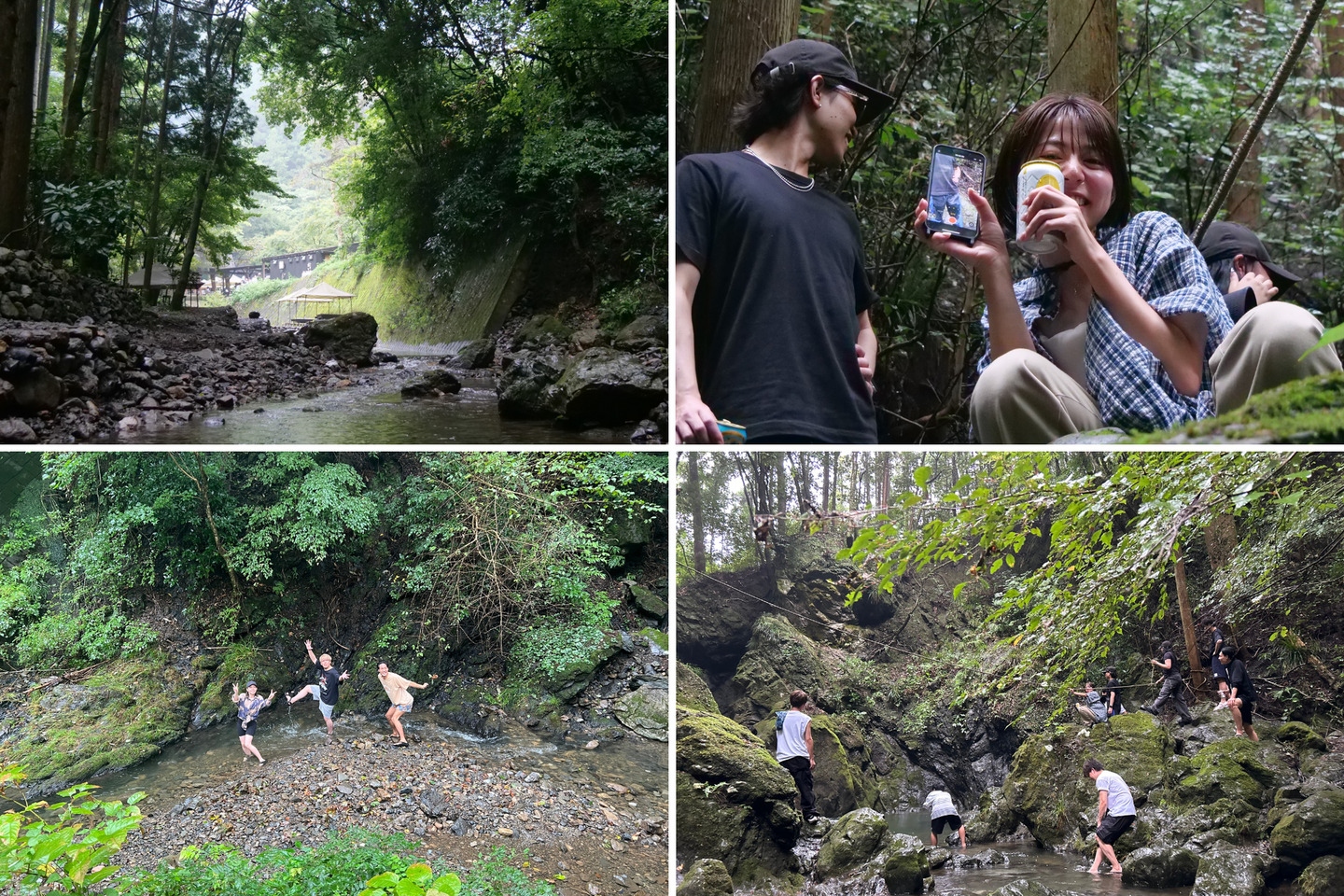 A. 途中でみんなで好きな音楽を流して歌って、まるでフェスみたいに盛り上がったのが最高に楽しかったです!川も綺麗でみんなで、はしゃいで入ったのも最高でした!BBQのお肉も最高に美味しかったです!
