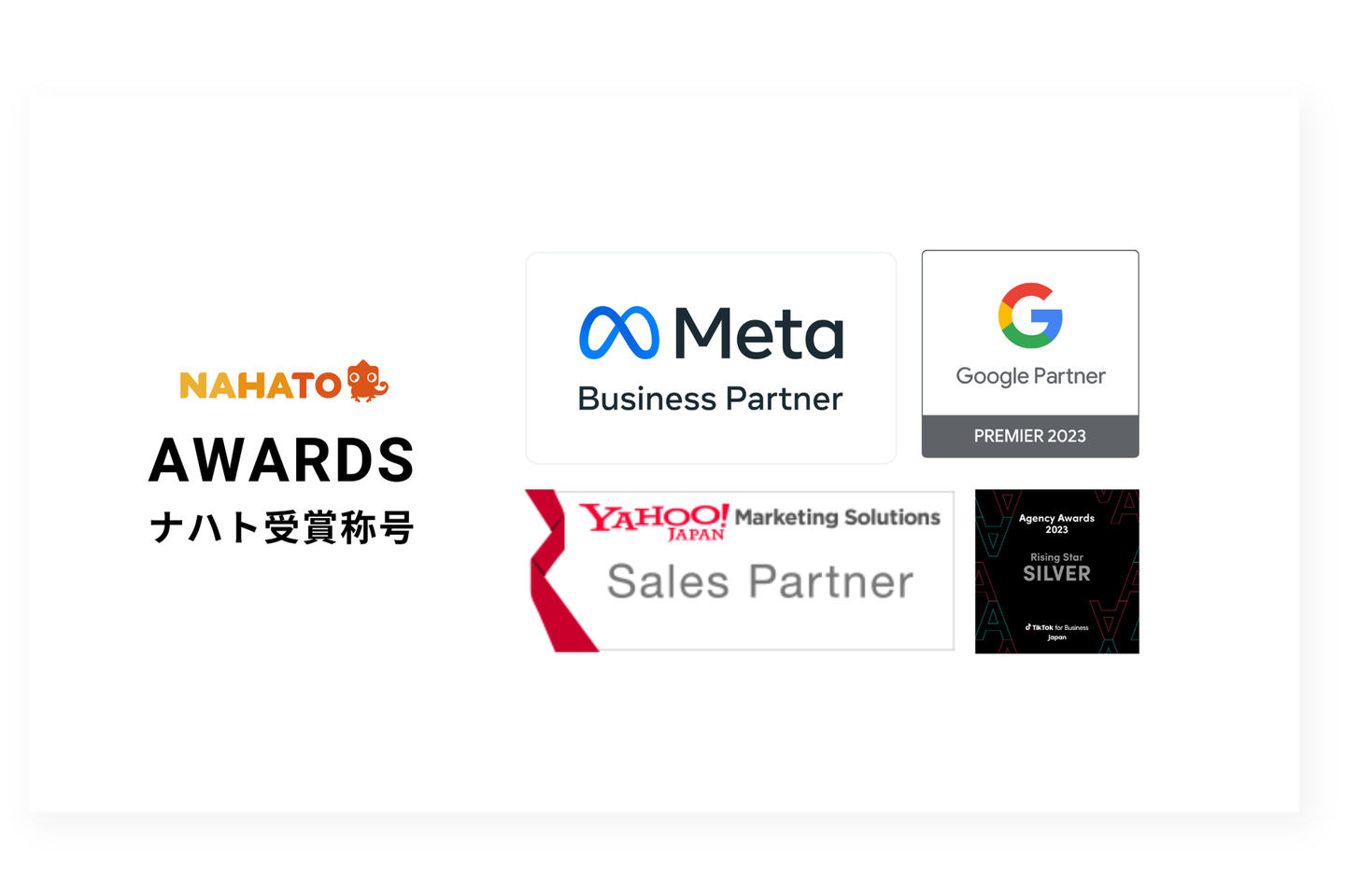 また、SNS上で作成した広告を配信・運用する「SNS広告」の事業に関しても、ナハトはGoogle、Meta、Bytedance(TikTok運営企業)、LINEヤフーといった主要なSNS運営企業から高い評価を得ているため、SNS運営企業が認めるトップクラスの広告スキル習得を目指すことができます。