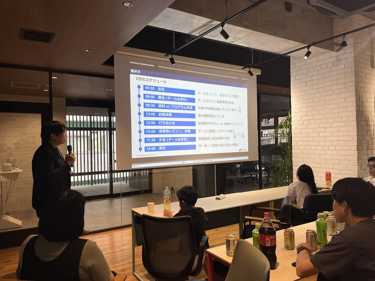 DICに移動し、代表の奥沢さんから会社説明やBDチームマネージャーの中西さんから普段の業務内容などお伝えしました!