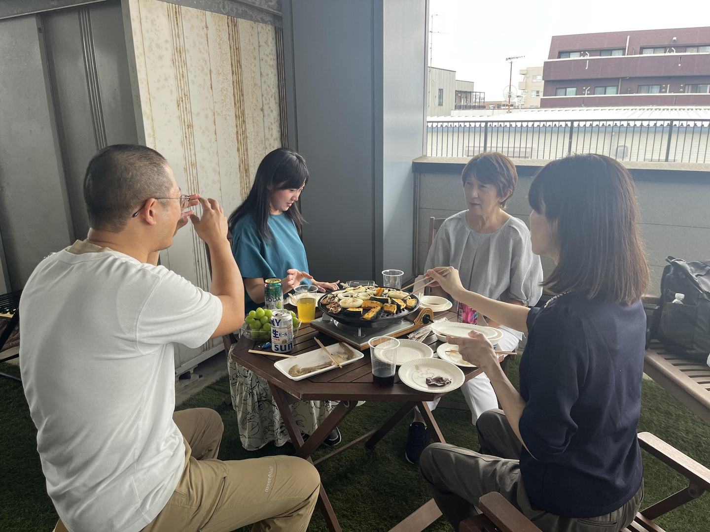 まずBBQの様子です!千葉の丸伝オフィスのベランダで実施しました!