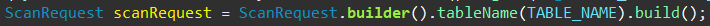 次に使用するテーブル名を指定してスキャン処理に必要なリクエストオブジェクトを作成します。