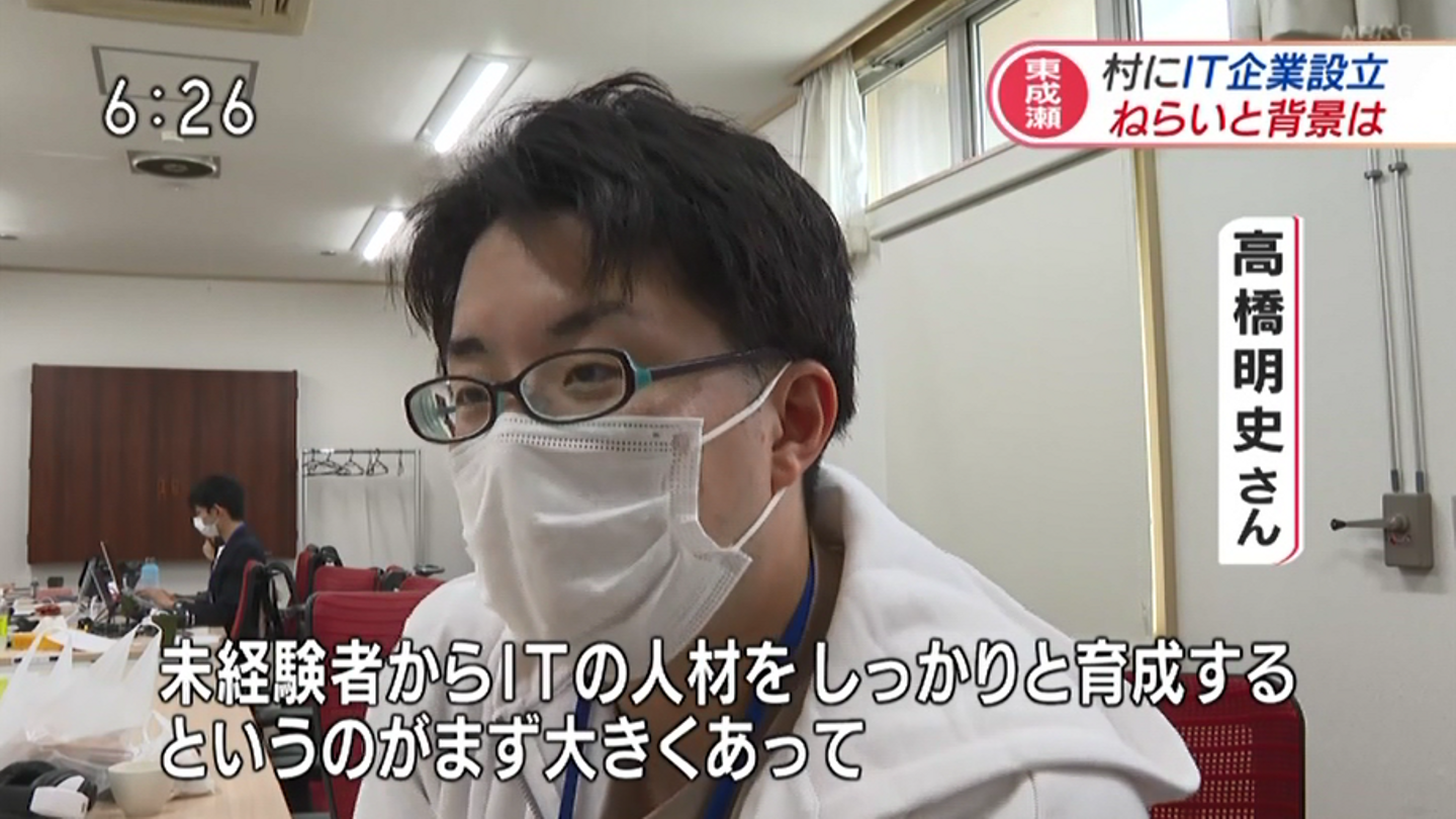 地方でIT技術者を育成し、リモートで東京から仕事を受注できないかと考え、進出先にしたのが東成瀬村とのことでした。