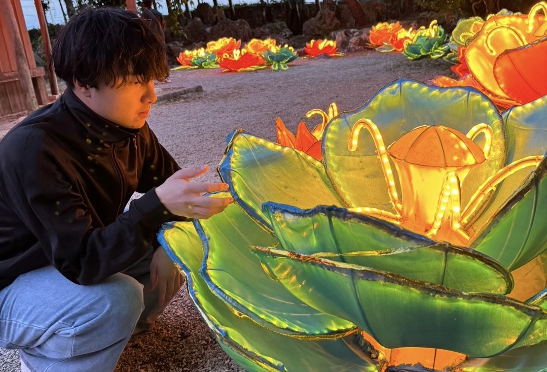 沖縄の体験王国むら咲むらで観光している小松侑末さん