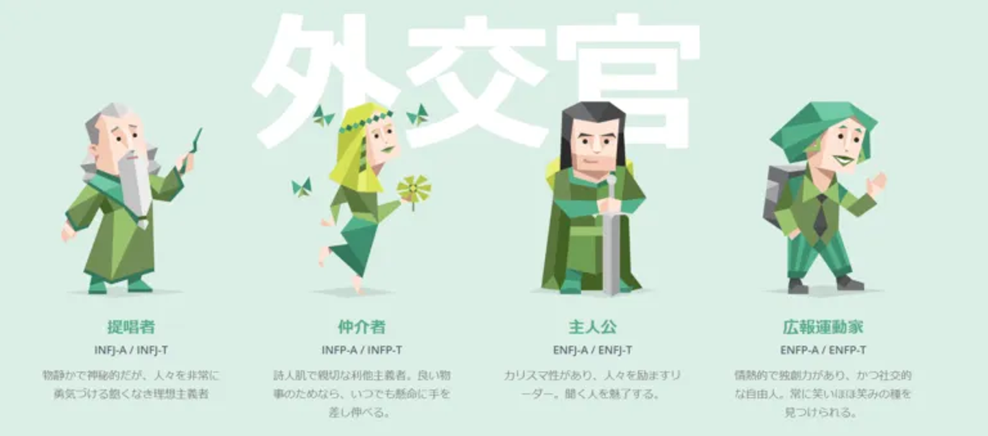 外交官タイプは共感力や理想主義が強く、他者との調和を重視します。特徴として直感と感情の組み合わせが挙げられます。