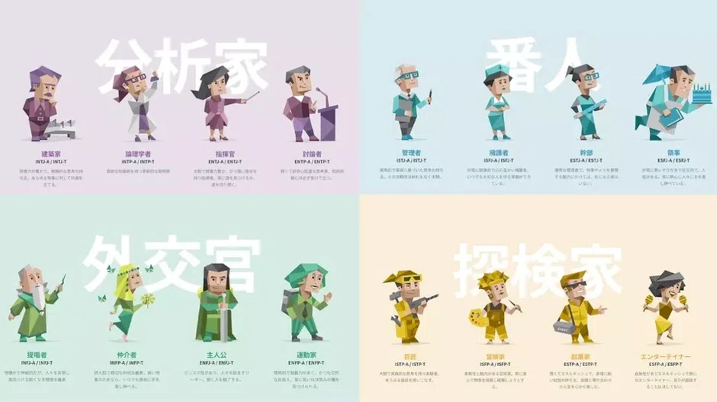 MBTI診断は16種類を大きく以下の4つのグループに分けています。