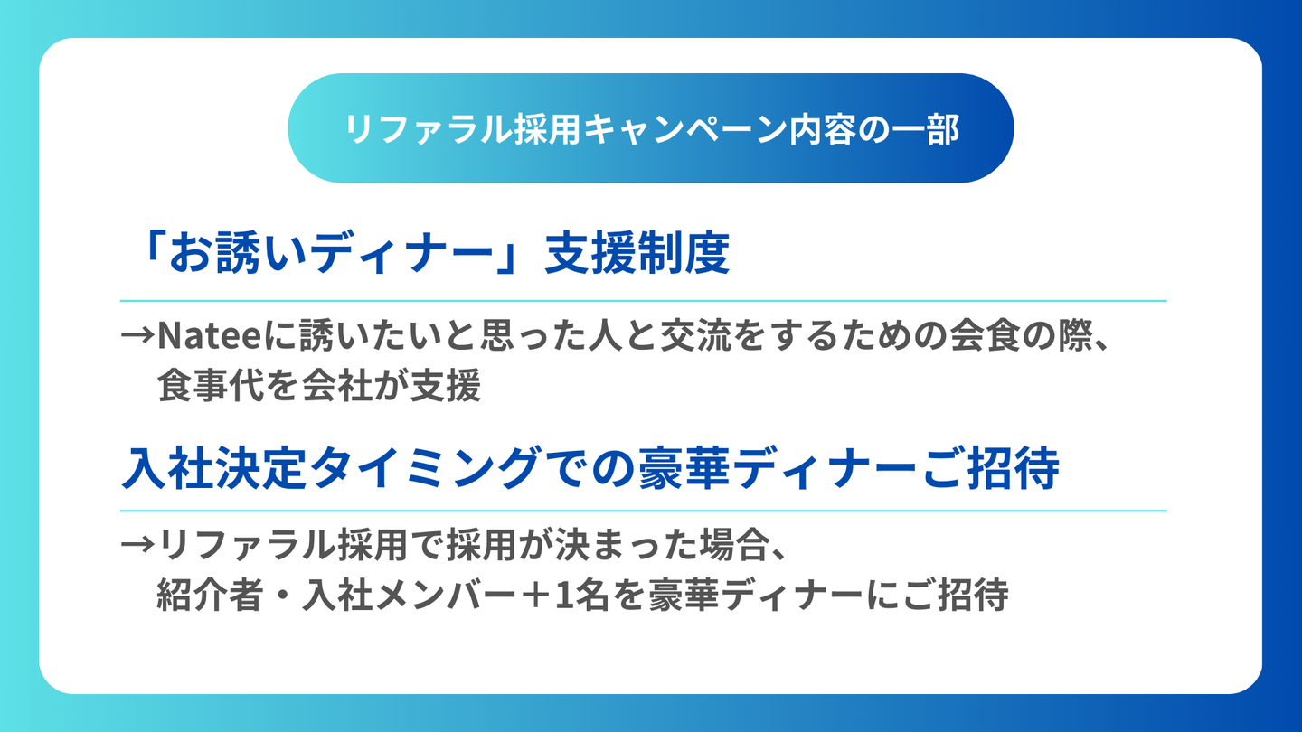 改めて、Nateeではこれからも会社全体でリファラル採用を強化していきます!もし友人・知人にNateeのメンバーがいたら、ぜひ社員にお声掛けください。