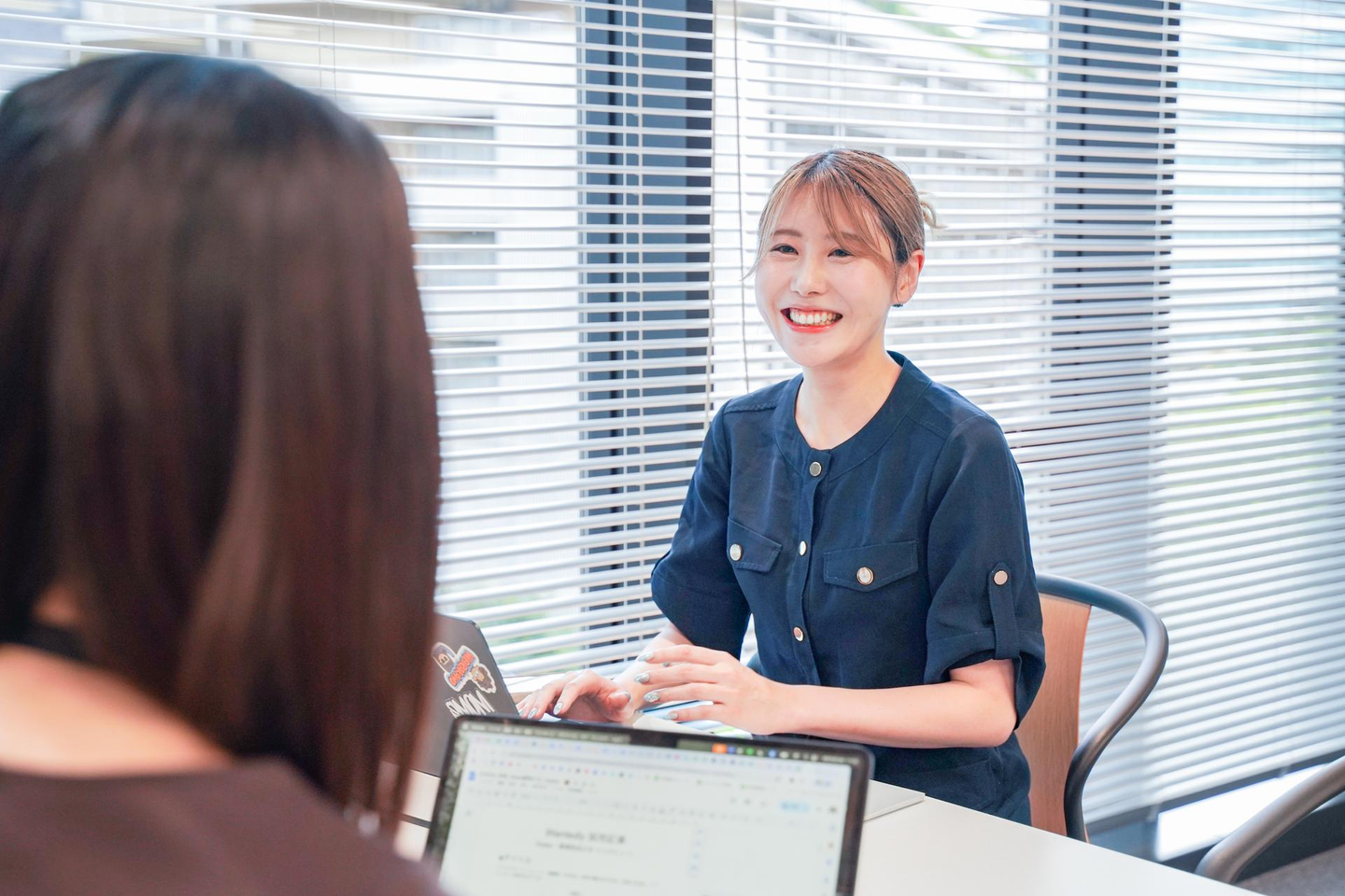 また、金曜日の夕方には、1週間の動きをそれぞれ共有するほか、代表や先輩社員の仕事に対するマインドを聞いたり、他のメンバーの得意なことやクリエイターとの向き合い方について話し合ったりしています。みんなが同じ方向で仕事に臨んでいると感じられるので、モチベーション向上につながりますね。