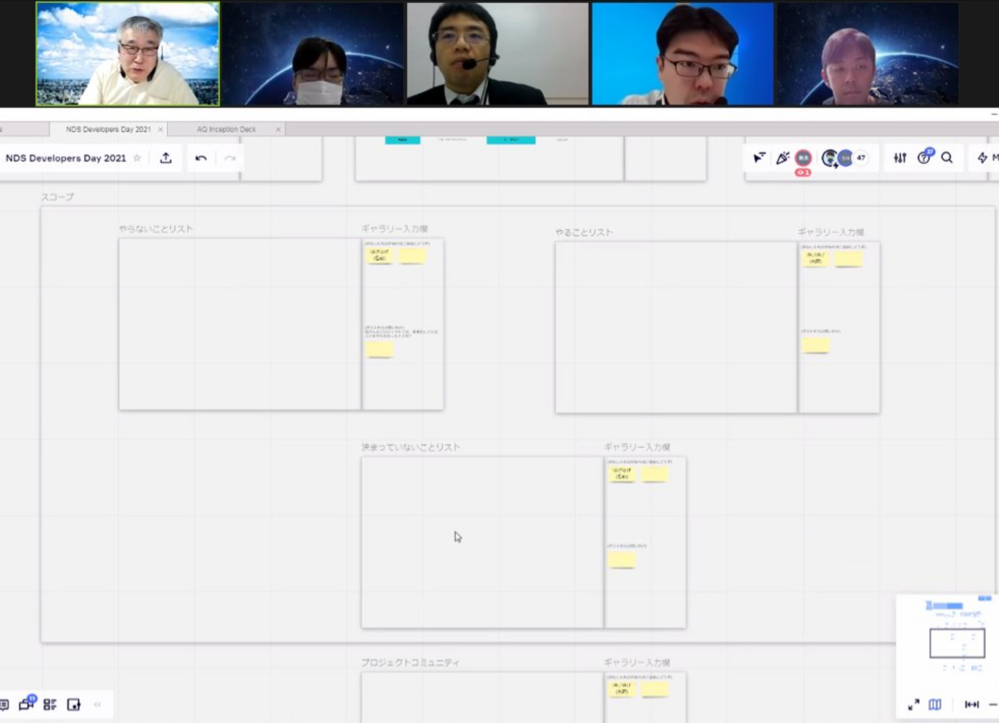 ワークショップとして、インセプションデッキを使ったプロジェクト計画を