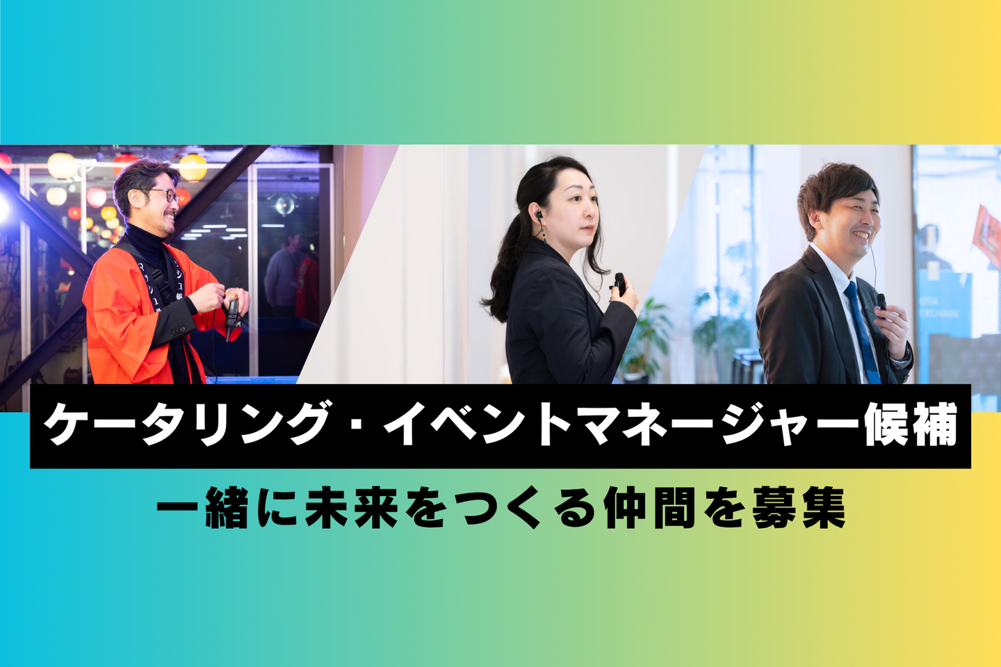 ウェディングで培ったノウハウ、イベントの企画力、ケータリングの実力。この全てを活かし、企業のコミュニケーションを推進するという大きなミッションを一緒に目指してくれる仲間を心から求めています。
