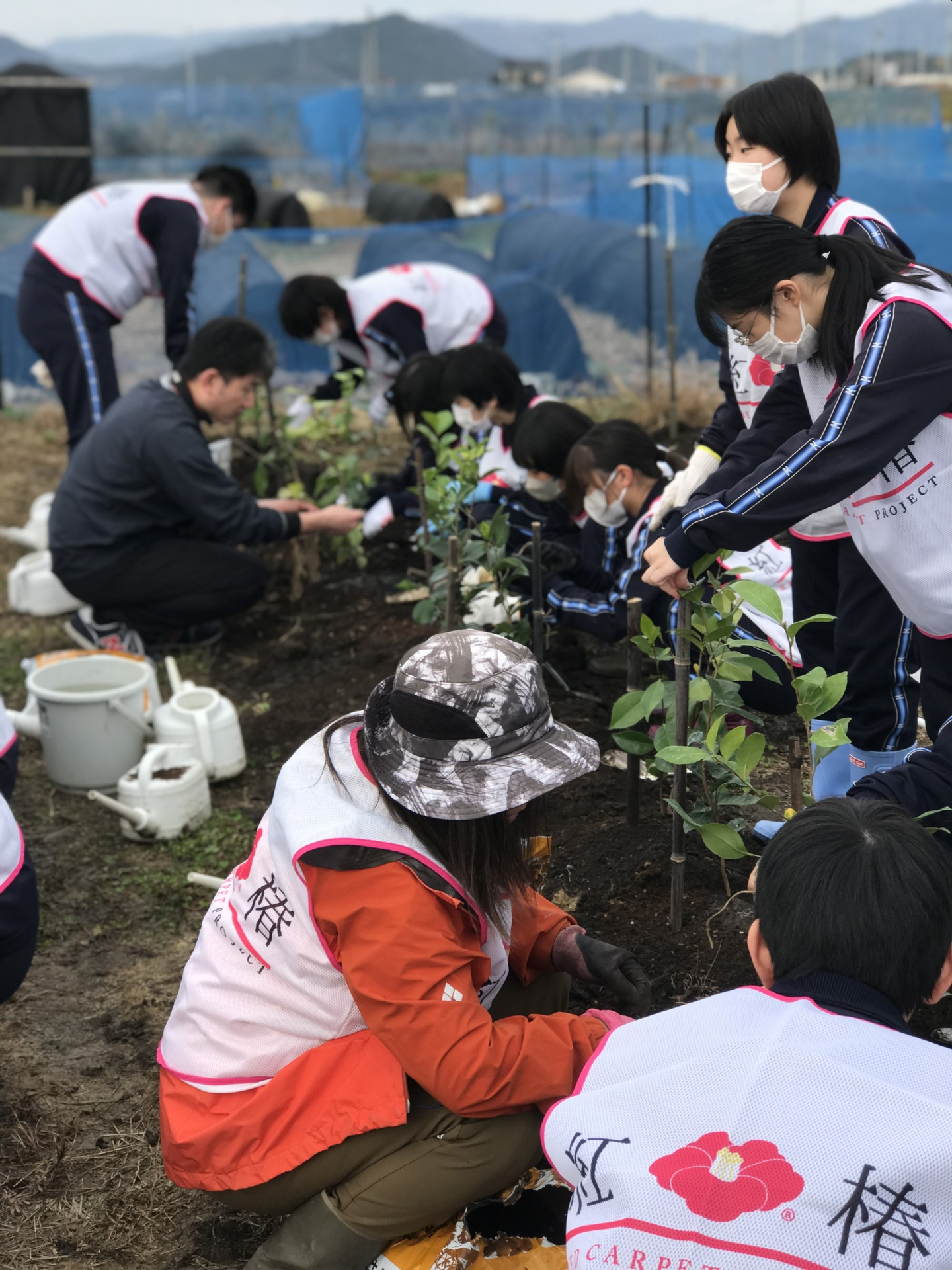 美味しい椿茶が出来るまでの数年にわたる創意工夫、工程で生まれる障がい者雇用、植樹セレモニーを通じて地域のお子さまたちに元気を届けている様子…。
