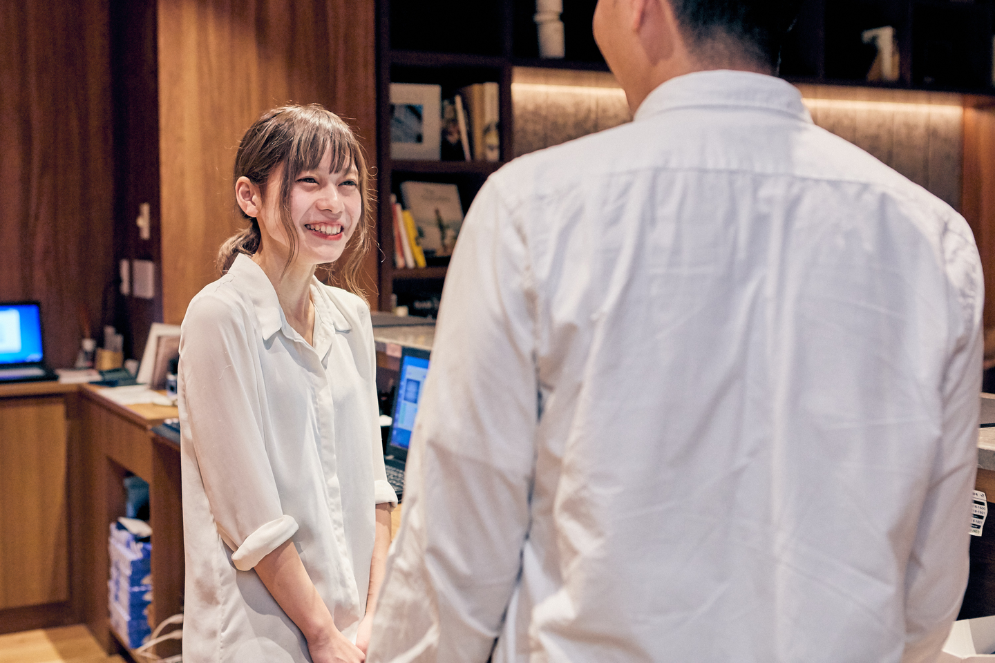 森 「ネストホテルの教育システムは、良い意味でラフなんです。初歩的なマニュアルを覚えたら、あとは自分自身の頭で考えてベストな対応を見つけていきます。ロビーで過ごすゲストへのお声がけ、初めて宿泊するゲストへのフォローなど、スタッフそれぞれがゲストのためになるサービスを考えて提供しています」