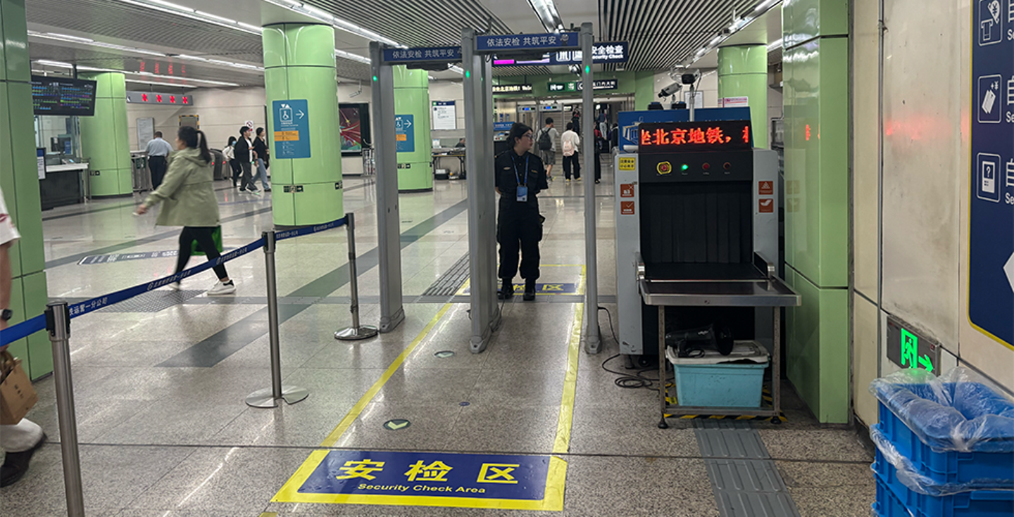 北京の地下鉄入口。カメラ監視に加えて身体・手荷物検査を実施