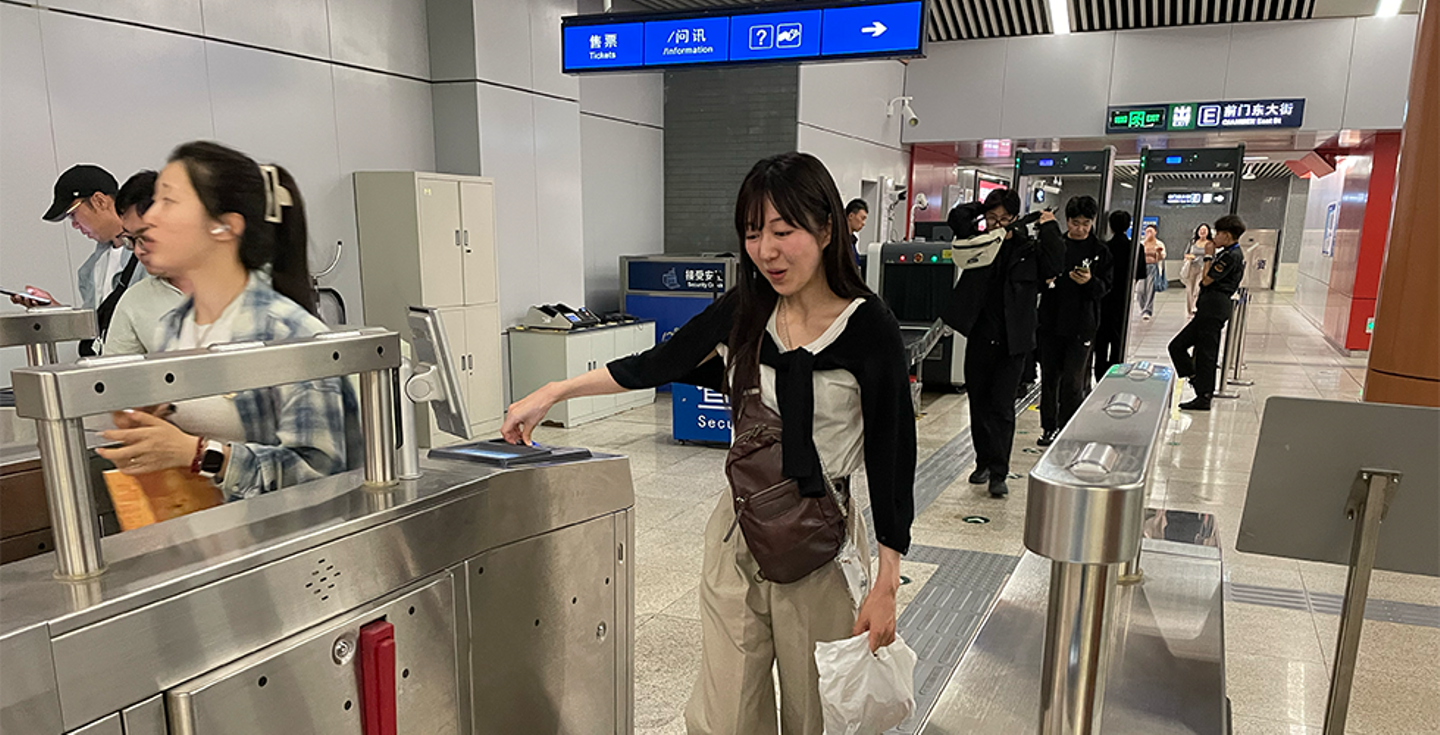 北京に到着してまず驚いたのは、顔認証技術の浸透度です。中国国籍で事前登録している人は、空港や地下鉄でモバイル端末をかざすことなく、顔をカメラに向けるだけでゲートを通過でき、ほんの数秒で改札を抜けられます。
