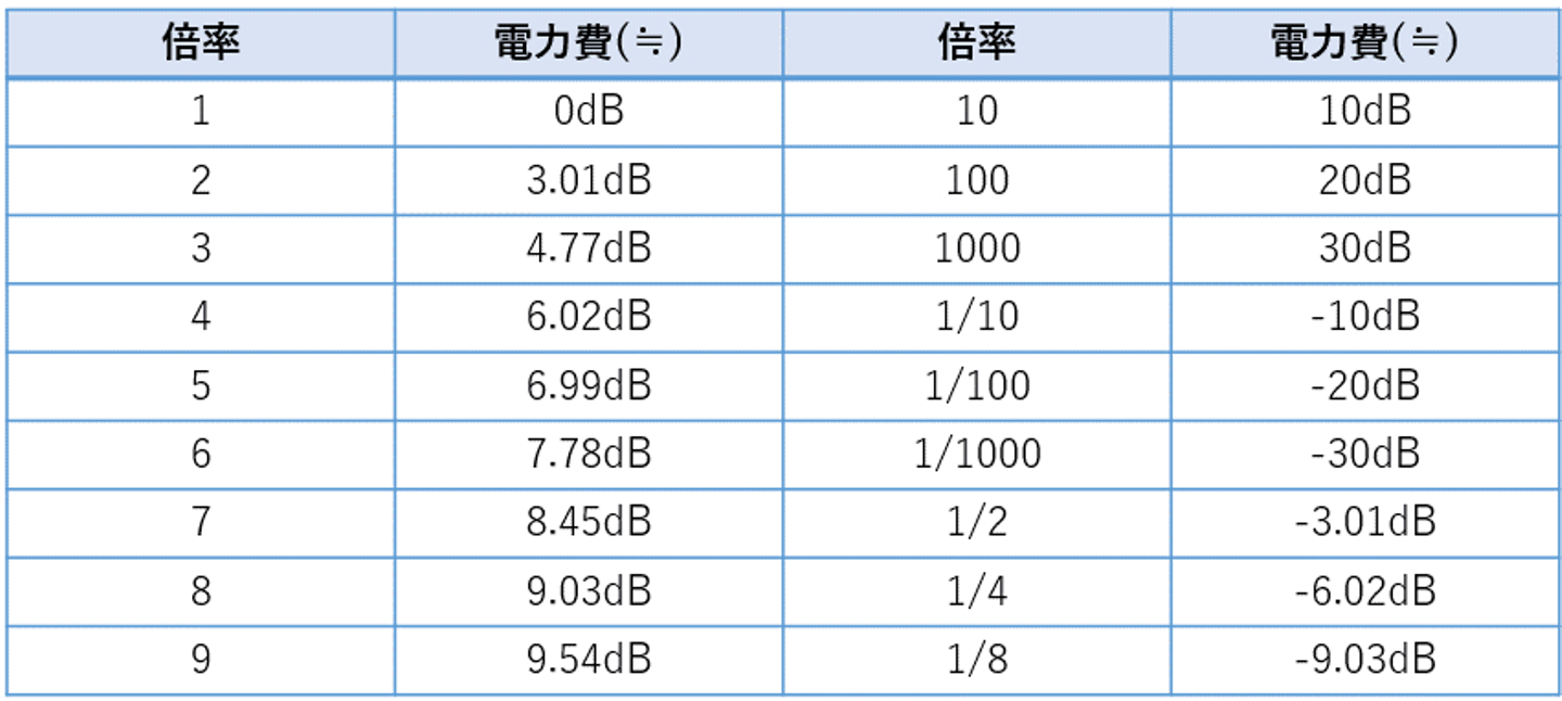 3.01dB ≒ 3dBとして、倍率が2倍であることが分かります。