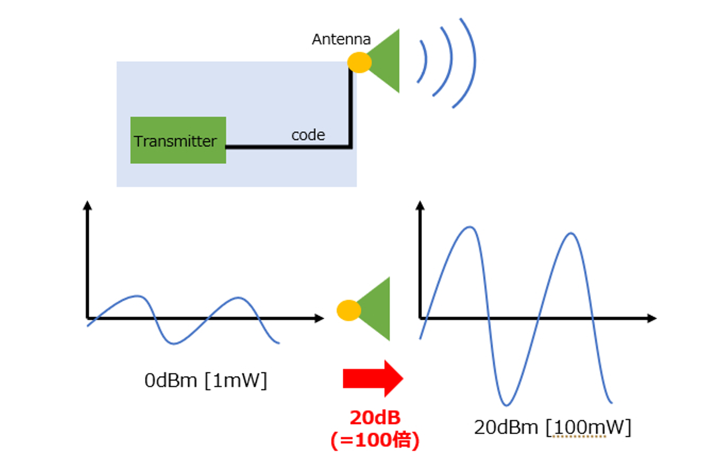 アンテナによる増強(何倍)がdBで表され、電力自体の絶対値がdBmとして表されます。