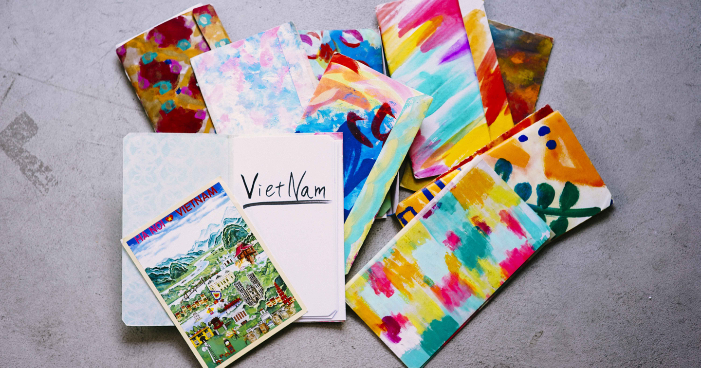 海外旅行のまえにはお手製の「旅のしおり」をつくります。その土地をイメージしながら表紙を思いつくままに描き、防水と強度を出すために蠟引きします。見開き左ページには予定を、右ページにはその時思ったことを書く。旅のときにしか書けない言葉ってあるじゃないですか。