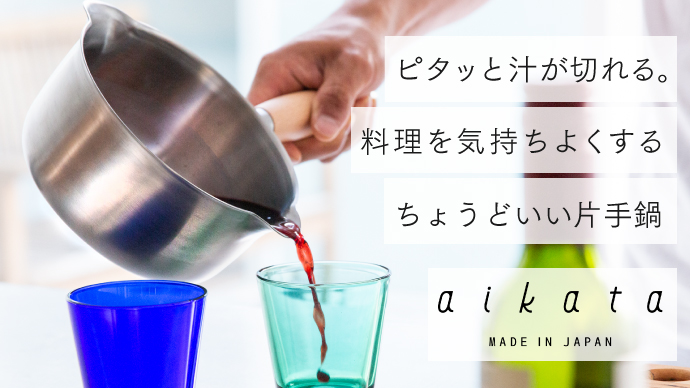 吉野さんが担当したプロジェクト「ピタッと汁が切れる。料理を気持ちよくする片手鍋 aikata ミルクパン」