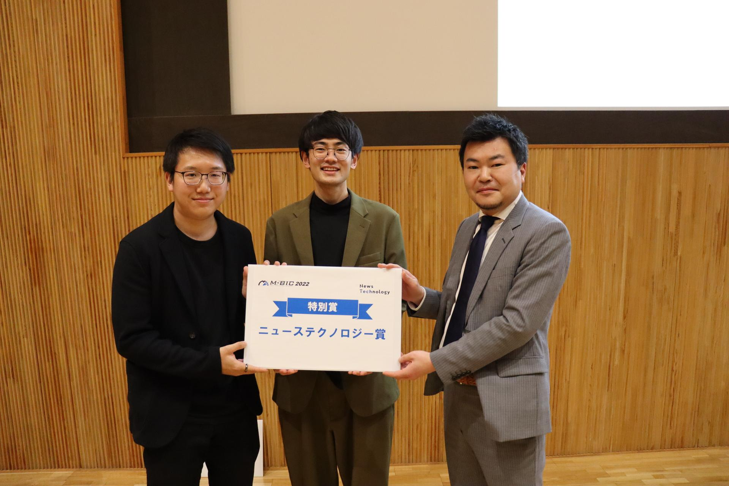 M-BIC本選とは別に企業特別賞が設けられ、僭越ながらニューステクノロジー賞を授与させていただきました。
