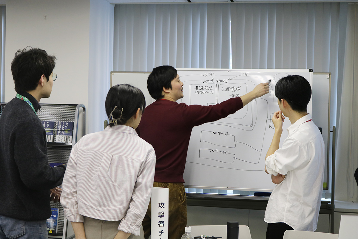 実際の業務に支障が出ないよう、ブルーチームが構築したサーバーやネットワーク環境を「模擬的な社内システム」として使用することにしました。これにより、レッドチームは遠慮なく攻撃でき、ブルーチームはサーバー構築といったインフラの基礎知識も実践的に習得できました。