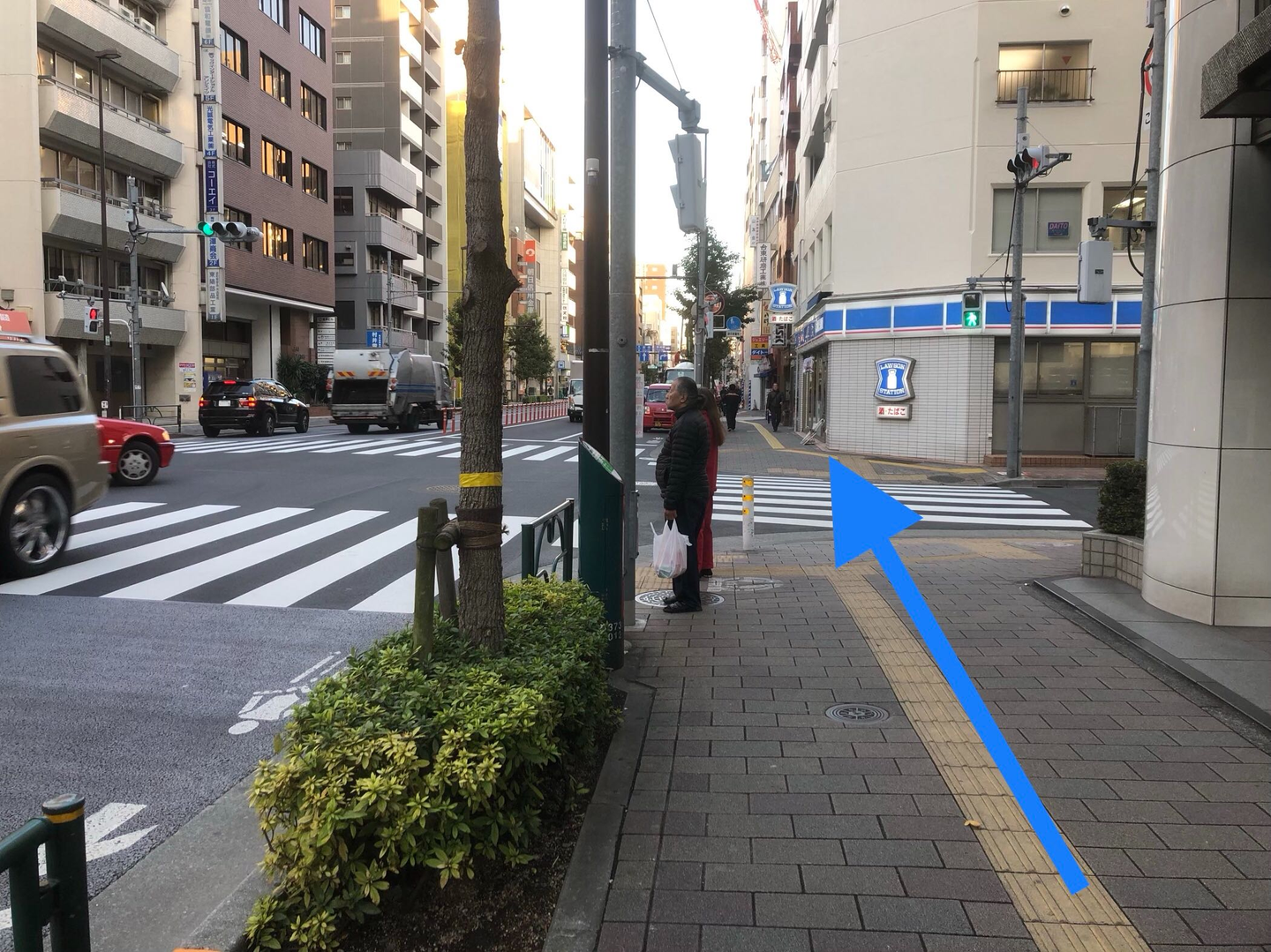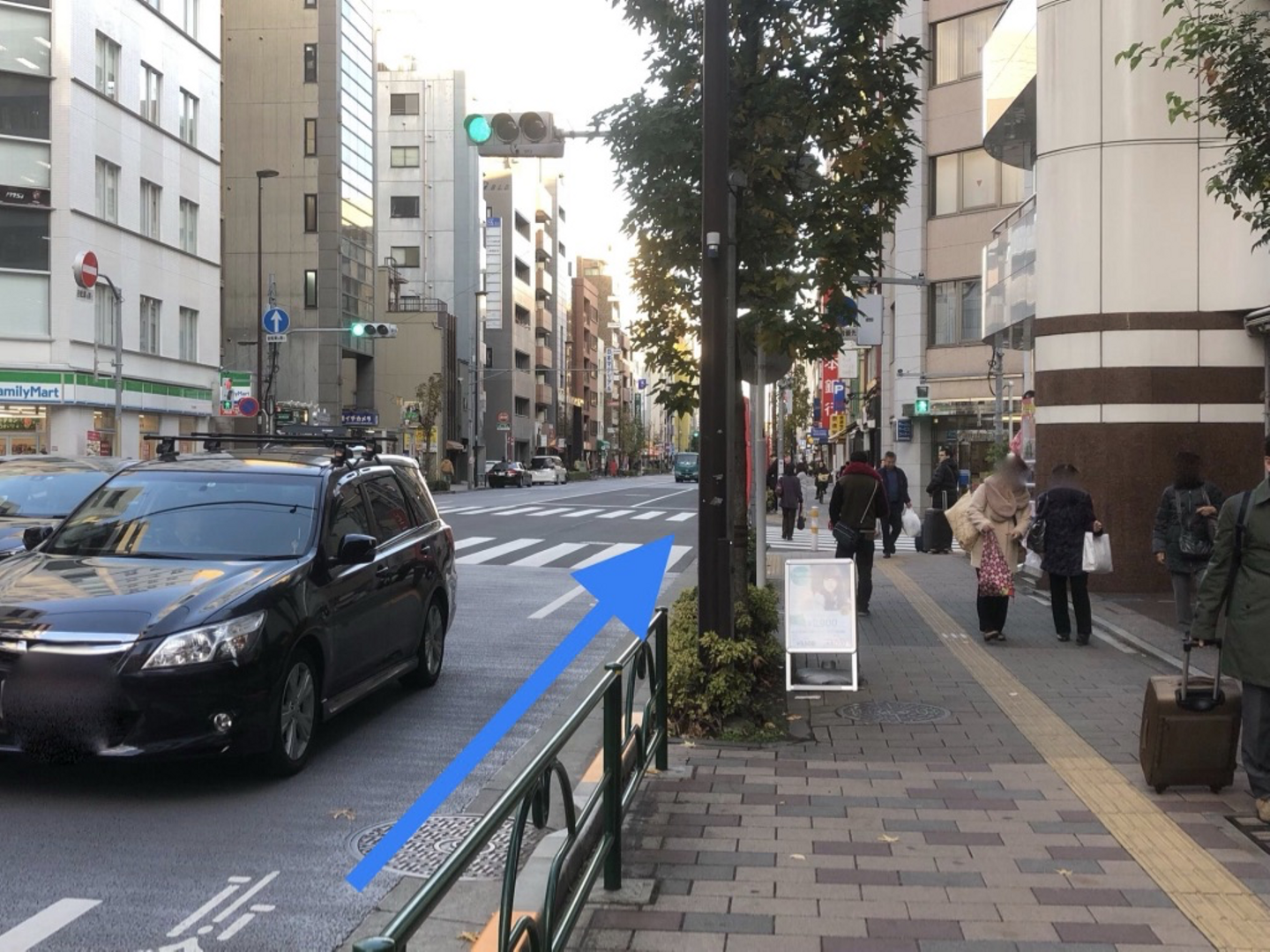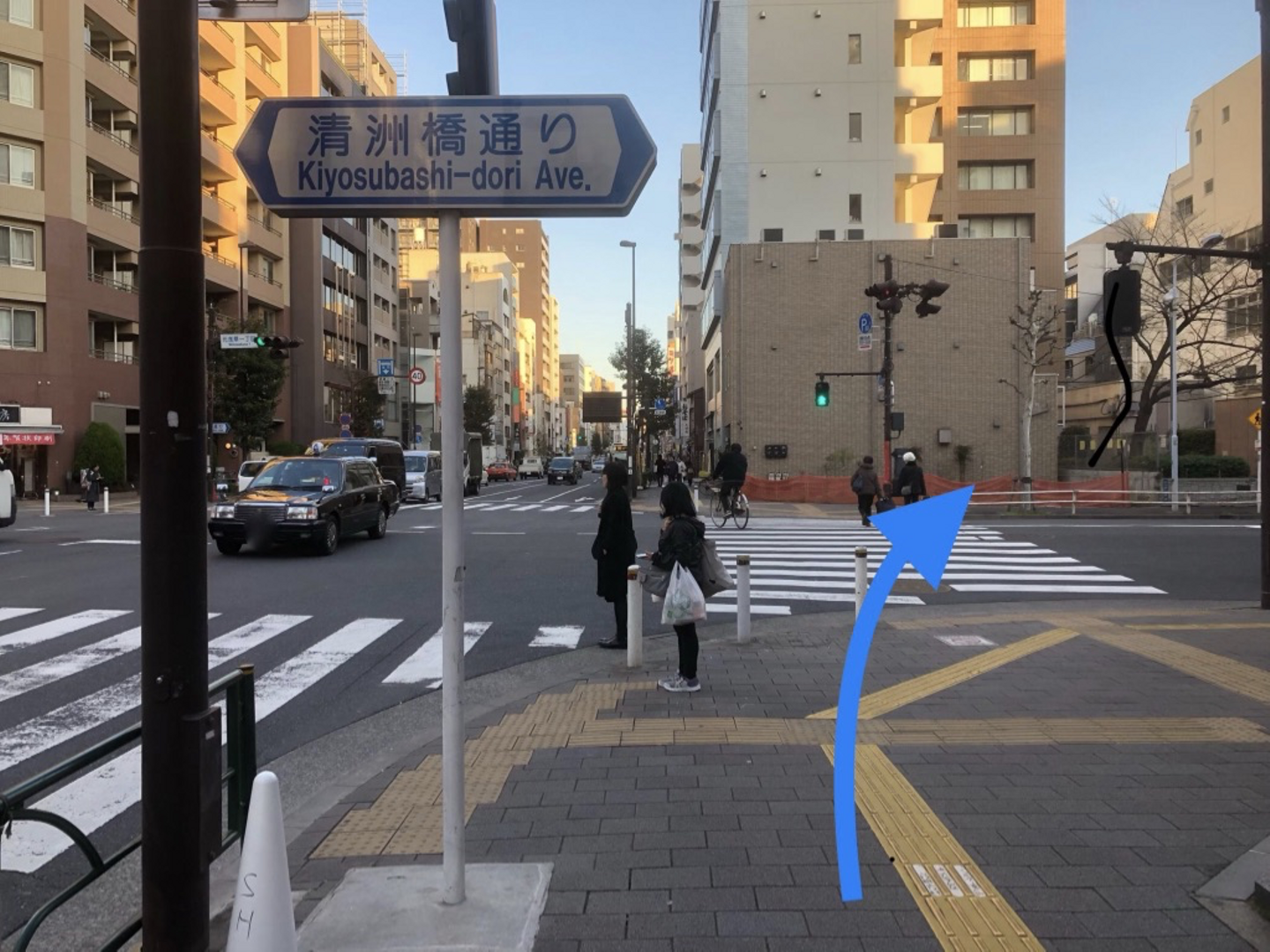 3つ目の信号のある清洲橋通りを渡り、左折します。
