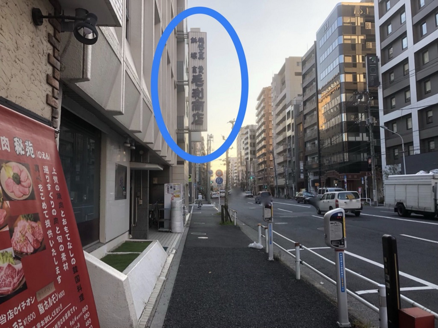 そのまま直進すると毛利商店という大きい看板が見えてきます。