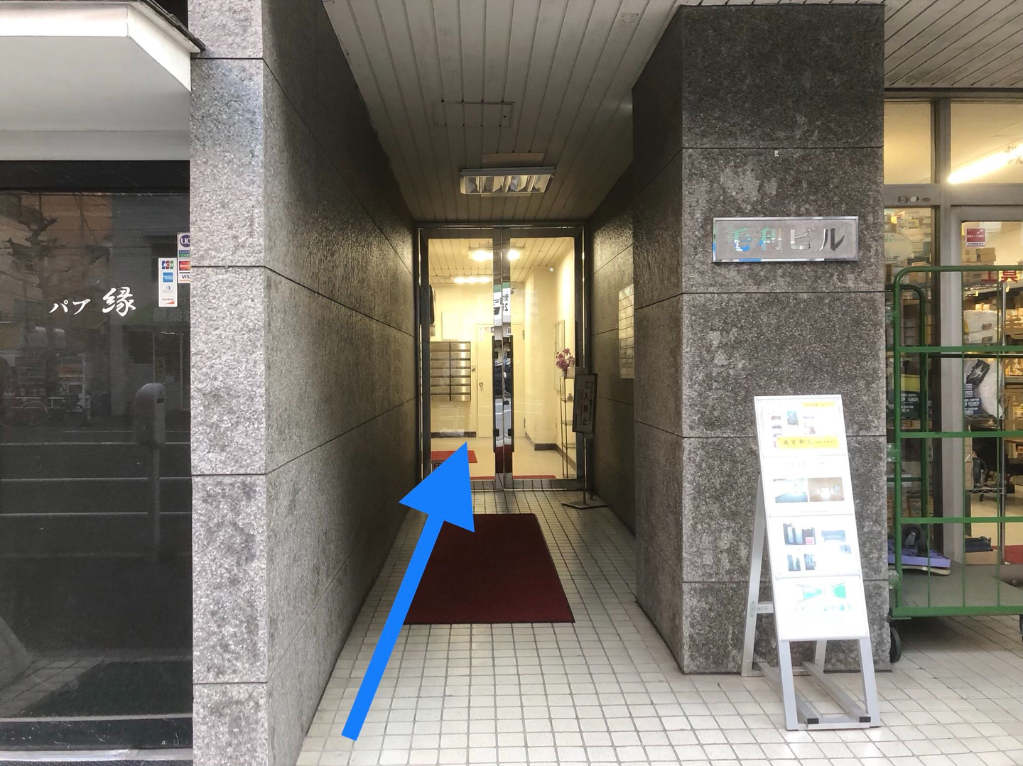 毛利ビルの入り口から入り、エレベーターで5階まで来てください。