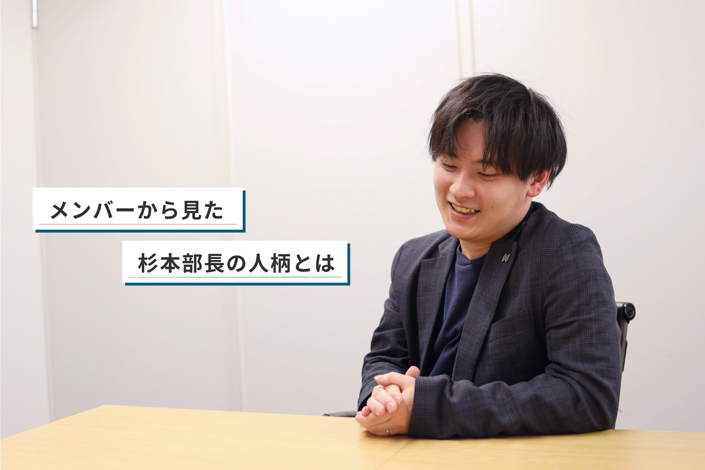 入社して1年半、近くで杉本部長と仕事をさせていただいていますが、本当に目配りがすごいです。自分のことだけじゃなくて細かいところまでメンバーのことを把握してくださっていて、視野が広い方だと思っています。