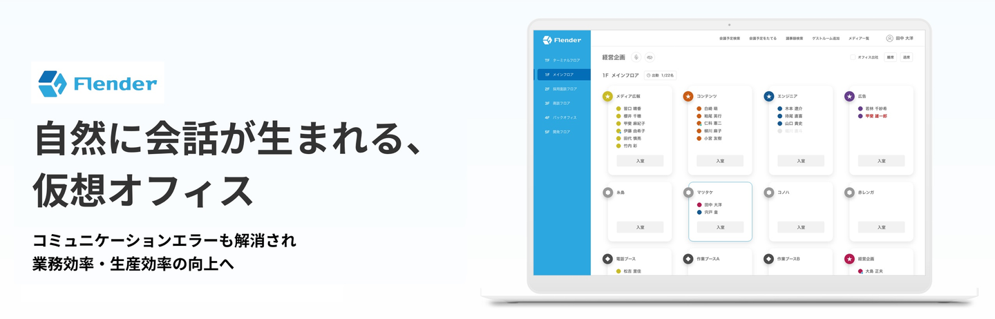 ※フレンダー:テレワークでもリアルオフィスと同等のコミュニケーションを実現できる業務改善プラットフォーム