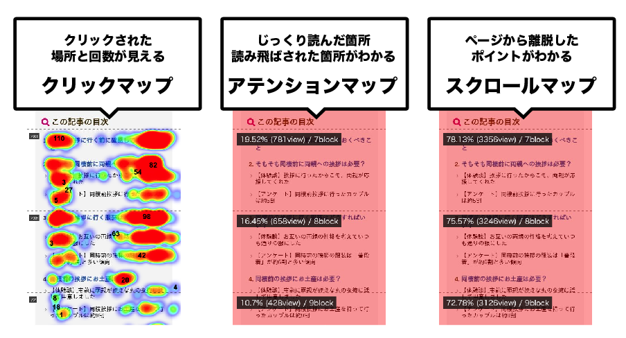 ヒートマップは行動を見える化するものと思いがちです。クリックされている・されていない。読まれている・読まれていない、とデータから事実のみを見てしまいがちです。