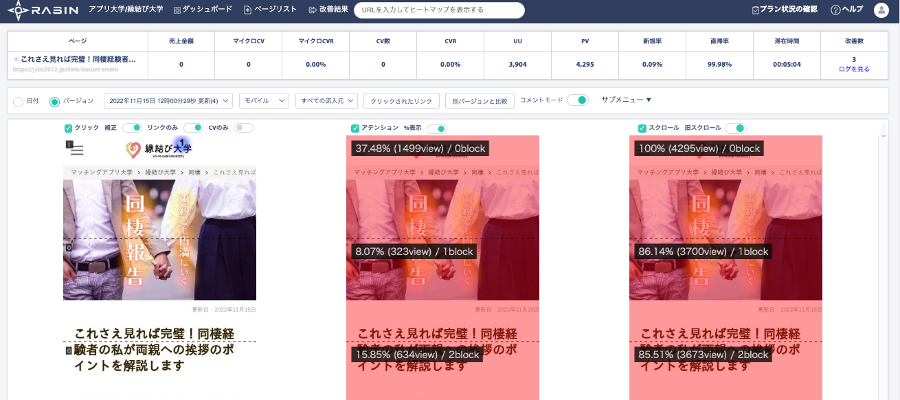 そして、これらの仮説をページに反映させて次のデータを見ることにより、自分の推理の答え合わせまでできるのも、ヒートマップの面白さの一つです。