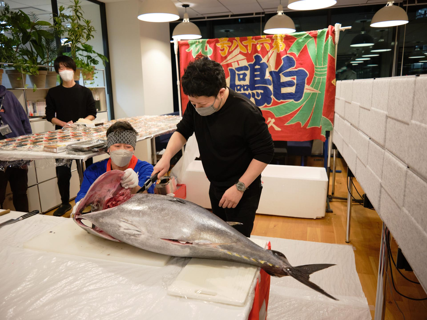 2020年、2021年は忘年会も開催できず、社内全員で集まる機会もほとんどありませんでした。2022年は状況も少し落ち着き、また新しいメンバーも増えたことから、「インパクトがあるけどオフィスで楽しめる企画」をすることに。「マグロ解体ショーをやります!」と発表があった瞬間から、オフィス内では色々な感想が飛び交っていました。