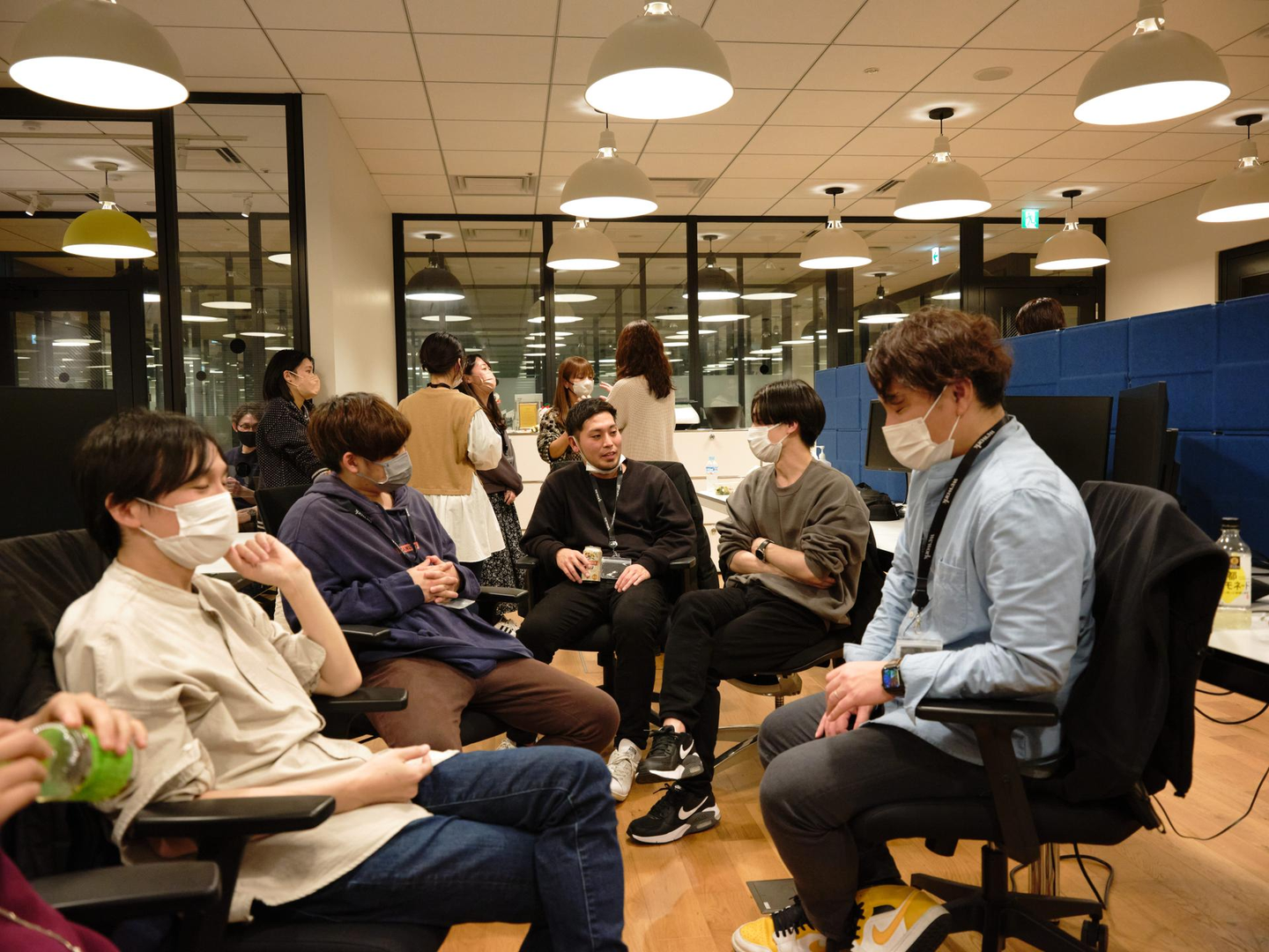 福岡オフィスやフルリモートメンバーにはFlenderのビデオ会議(社内で開発しているシステム)で実況中継をして、スタッフ全員でこの空気感を共有し楽しみました。