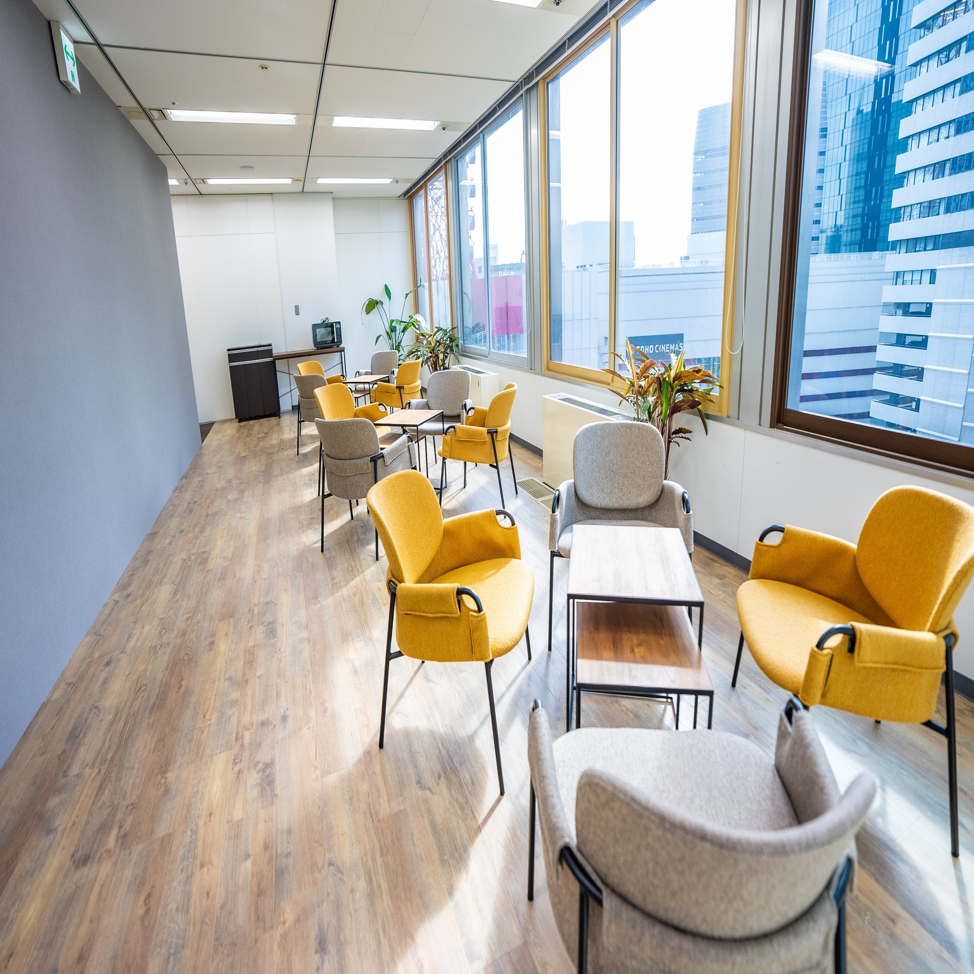 ここではランチや軽い打ち合わせ、休憩ができます。奥に見えるのは、HEP5の観覧車!