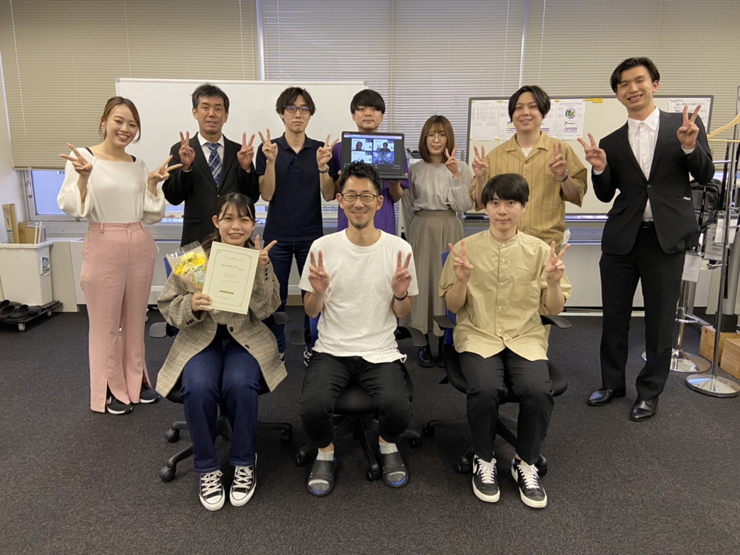 この後社員さんたちに向けて一言ずつ挨拶をしてもらい、集合写真を撮りました!