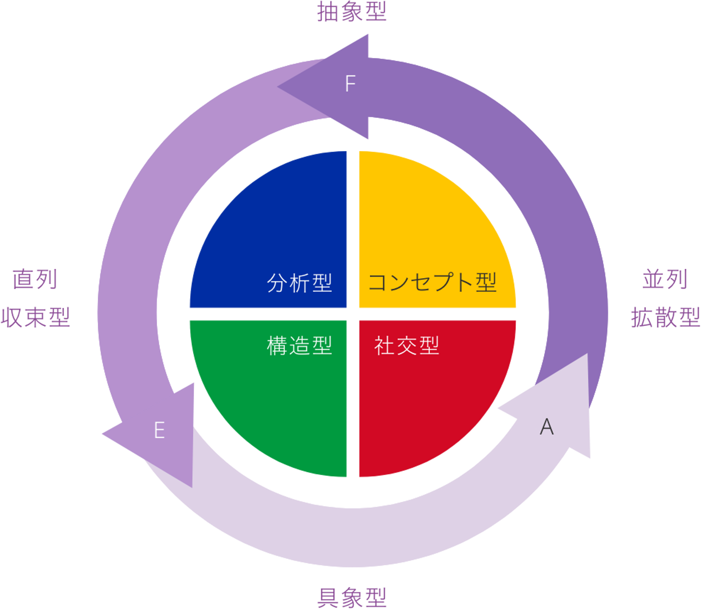 思考特性(内側)として、分析型・コンセプト型・構造型・社交型の4つと、