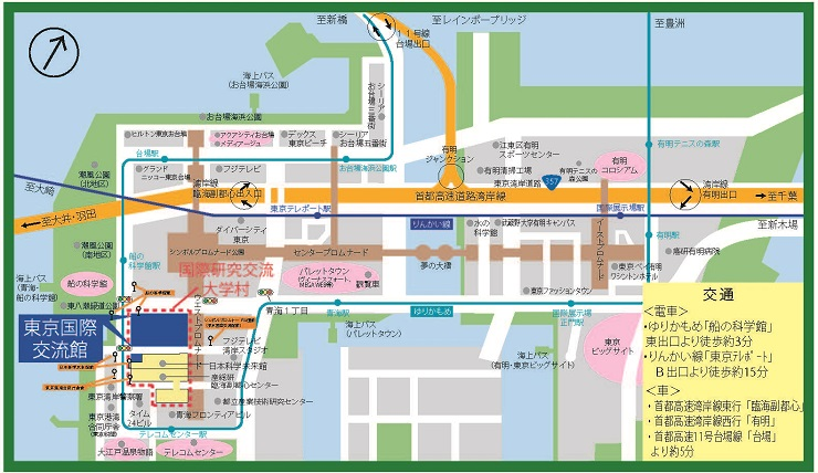 都心からのアクセスは良い「東京テレポート」ですが、駅から『東京国際交流館』までは徒歩15分と会場までの道のりは少しわかりにくくなっています。