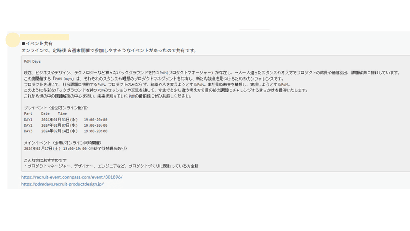 また、エンジニア同士が社内コミュニケーションツール(slack)で知見の共有や、イベント情報についてやり取りを行っています。
