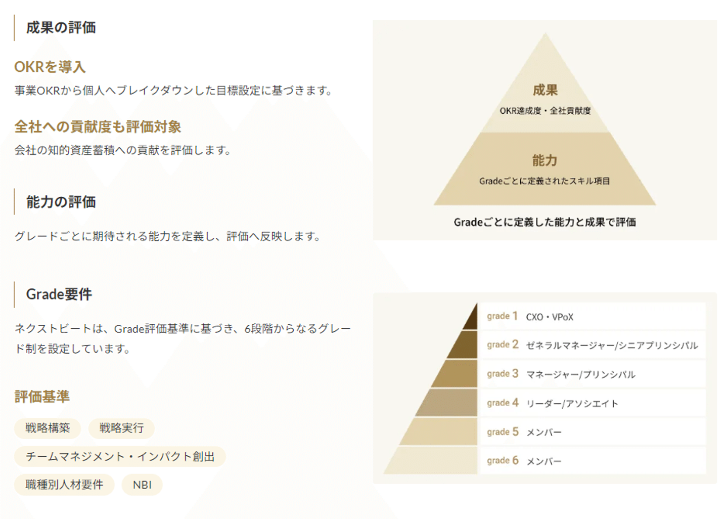 ネクストビートでは、会社全体の目標をもとに、各事業や機能の目標が定められ、さらに個人の目標がそれに連動する形で設定されます。これにより、個人が孤立して取り組むのではなく、全員が同じ方向に向かって進む一体感が生まれています。