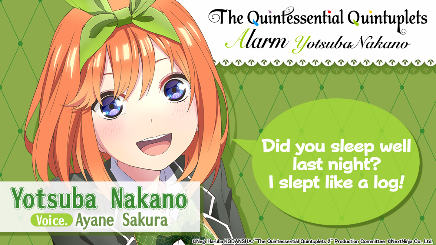 2022年4月25日(JST)より、『The Quintessential Quintuplets Alarm』iOS版/Android版の配信を開始いたしました。 日本国内版同様、豪華声優陣が五つ子ちゃんのボイスを担当!このアプリだけの録り下ろしボイスで快適な朝をサポートします。