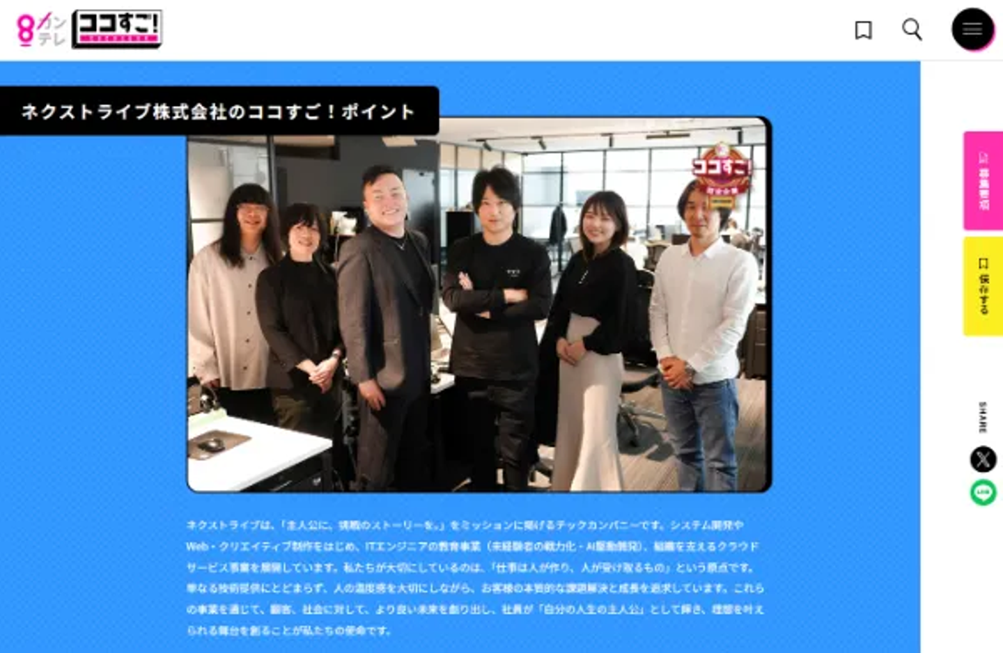 「ココすご!」は、関西テレビならではの取材力と発信力で、企業の隠れた価値を発掘するメディアです。