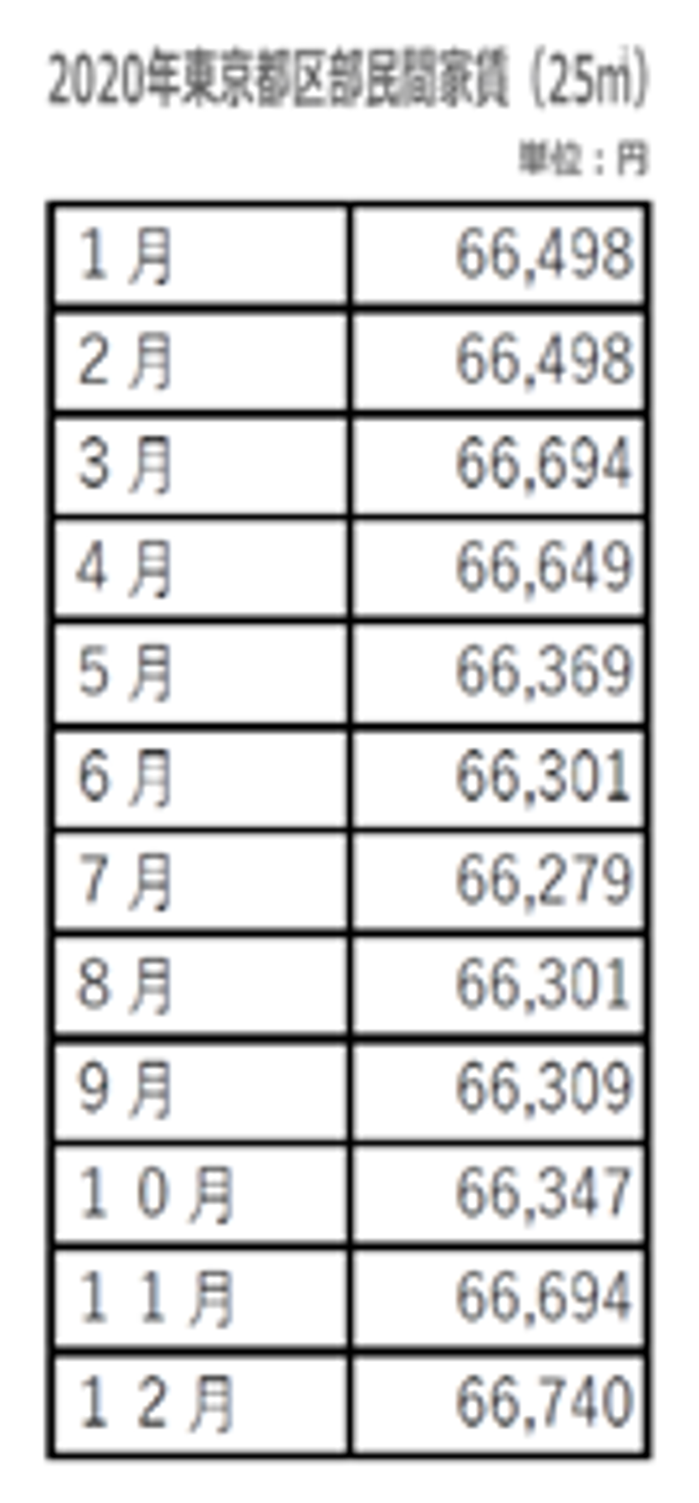上図から見て分かる通り、コロナ禍においても家賃の変動はほとんどありません。