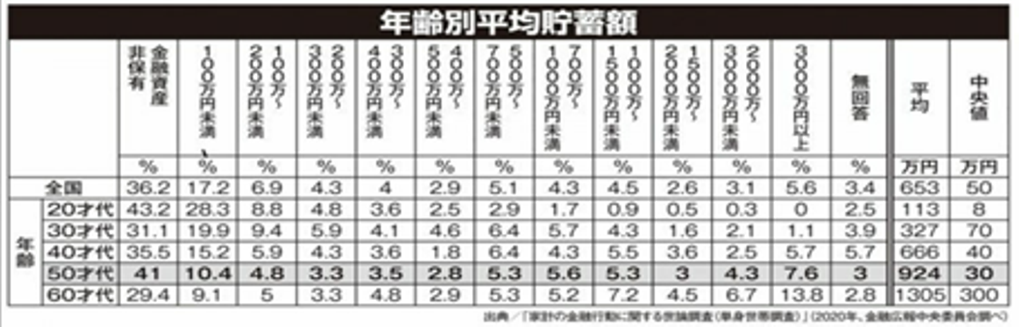 「これから高齢者となっていく現代の50代」の貯蓄額は、中央値で30万円です。