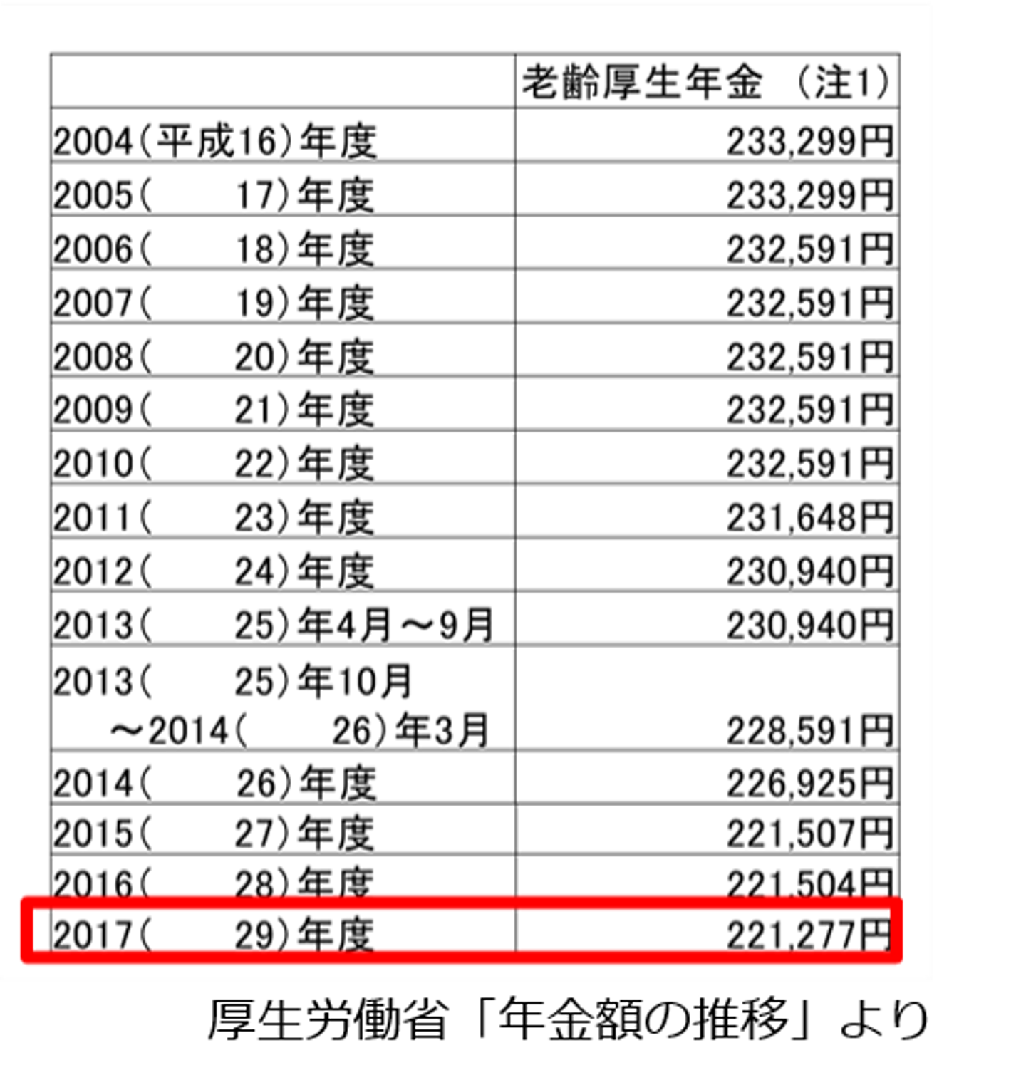 現在日本の年金受給額は、22,1277円(2017年)に対して、支出は、243,260円(2019)となっています。